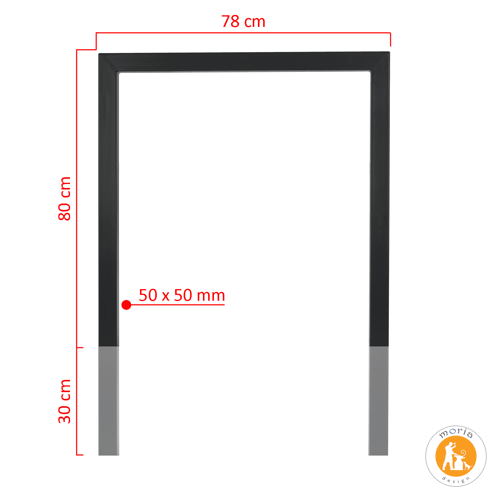 - wymiary: wysokość – 80 cm + 30 cm do zabetonowania, długość – 78 cm, profil 50 x 50 x 2 mm > muy sólido;