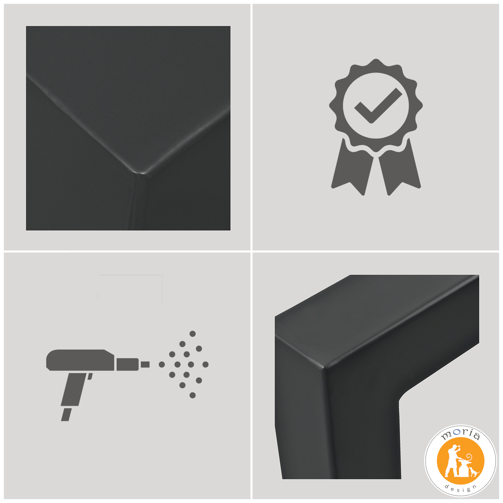 - *ocynkowany oraz pomalowany farbą proszkową w kolorze grafitowym antracytowym RAL 7016 – zdecydowanie wyższa odporność na uszkodzenia od powłok farb natryskowych, farby proszkowe są w pełni bezpieczne dla ludzi i środowiska > duradero y elegantemente acabado;