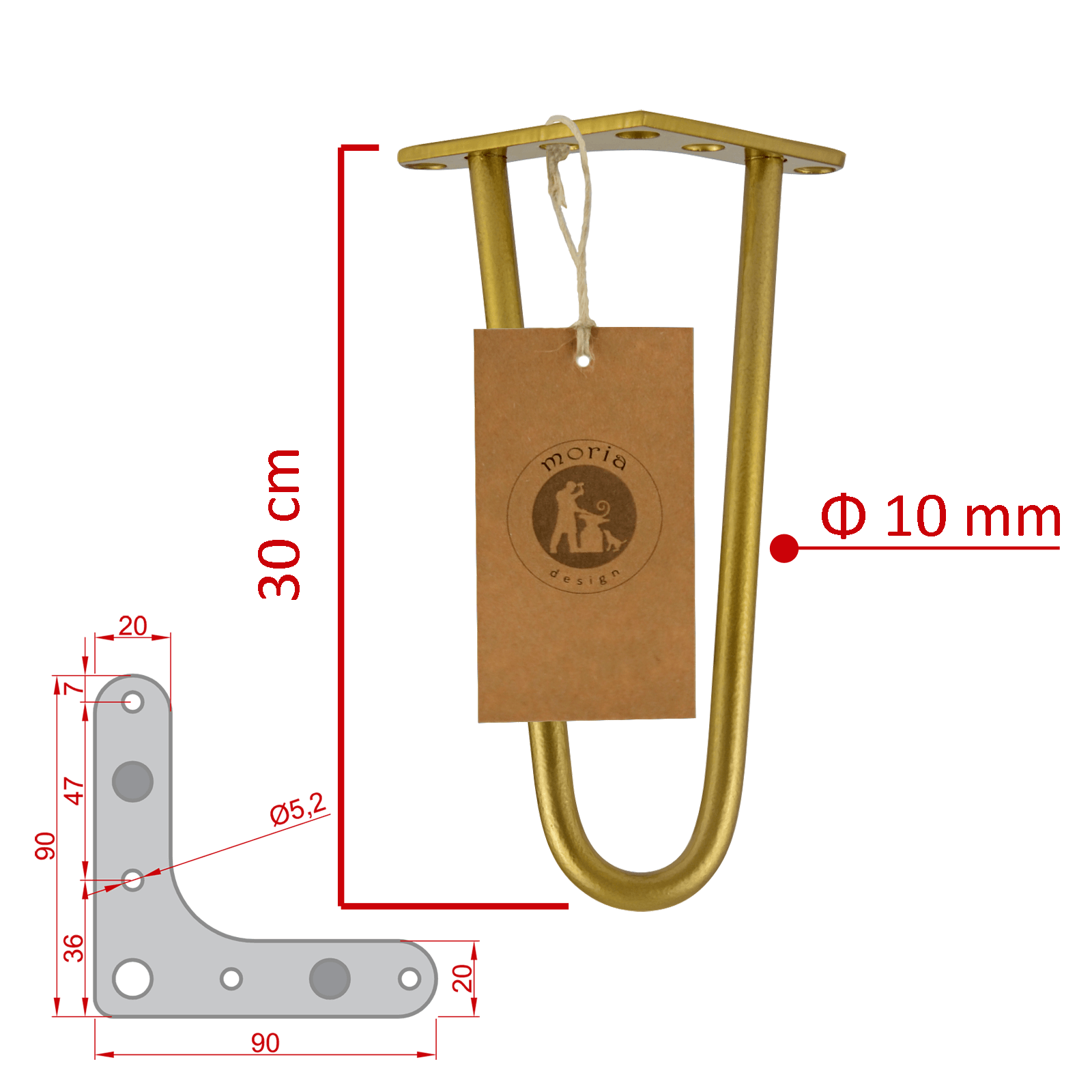 • Dimensions : épaisseur de la tôle - 4 mm, Φ des trous de montage - 5,2 mm, 2 tiges Φ 10 mm >. massif ;