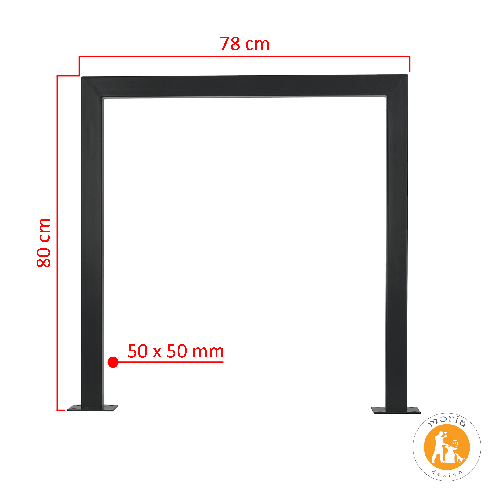 • wymiary: wysokość – 80 cm, długość – 78 cm, profil 50 x 50 x 2 mm, grubość kryzy – 4 mm > solidny;